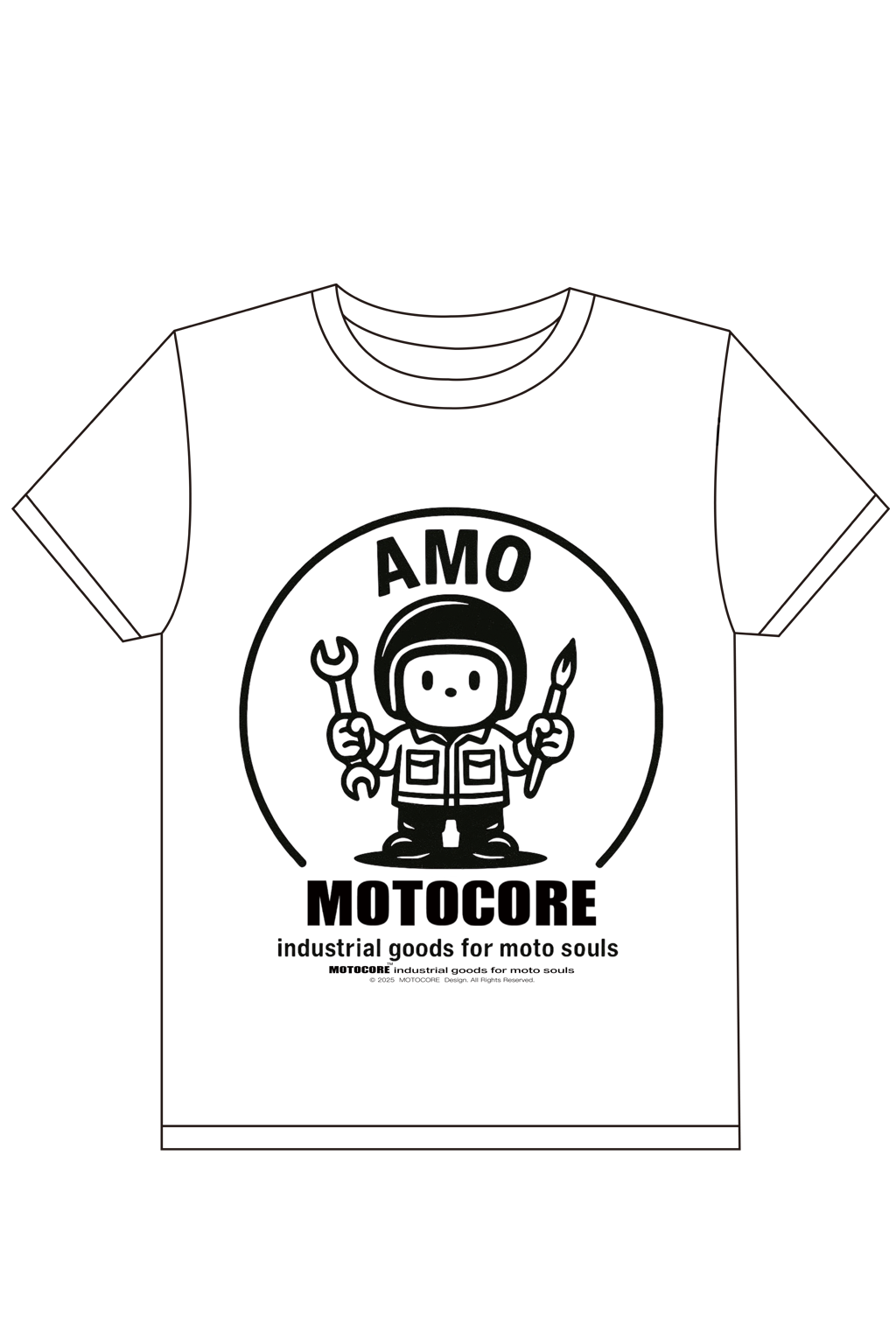 前胸印有阿摩標誌角色:板手與筆,象徵雙重戰力