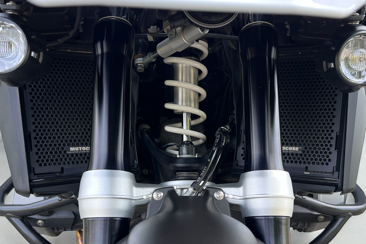 BMW R1300GS 的雙側水冷排,直接暴露在飛石與泥砂衝擊第一線,